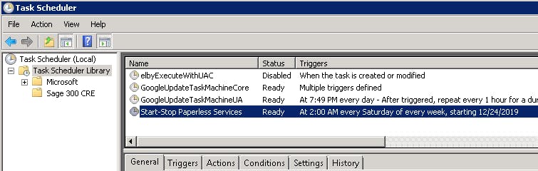 In lieu of scheduling a full Paperless Application Server reboot, customers can also have the Paperless Services start and stop on a schedule using a batch file and the Windows Task Scheduler.